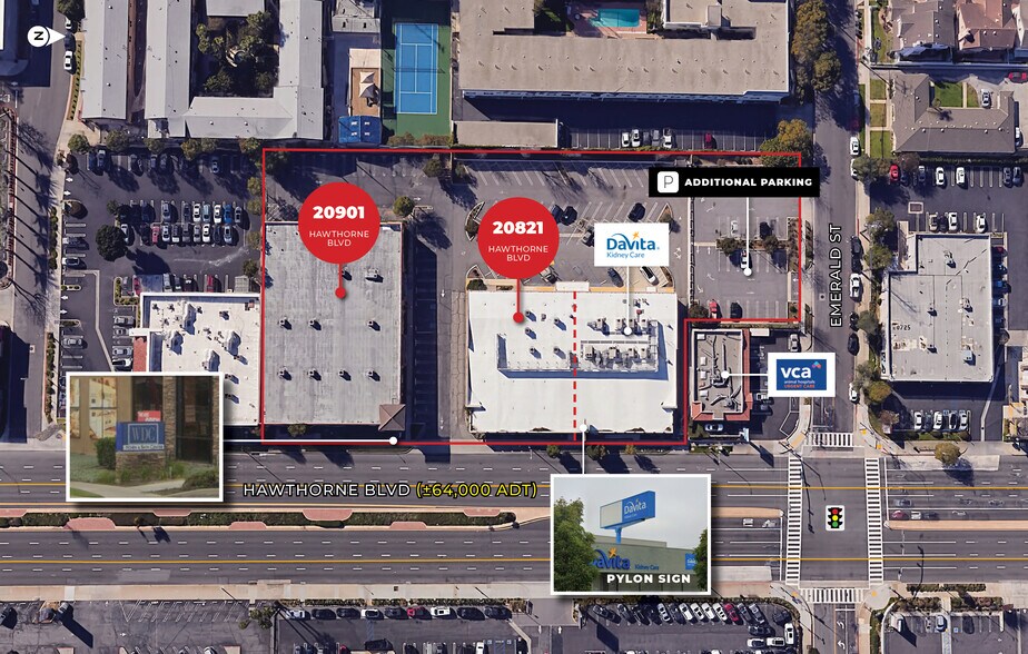Le 28021 Hawthorne Boulevard a une surface de ±8 500 m2 Pi. d'espace de vente au détail divisible et à haute identité avec une excellente façade le long du boulevard Hawthorne. Le site est situé dans le corridor de vente au détail du boulevard Hawthorne, l'une des principales zones de commerce de détail de South Bay. Les locataires de l'automobile ont l'occasion de se joindre à plus d'une demi-douzaine des plus grands constructeurs automobiles au monde. Les utilisateurs médicaux peuvent rejoindre DaVita et profiter de la proximité du site avec les installations médicales de classe mondiale de Torrance.