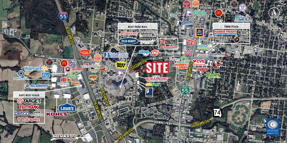 Rejoignez Rural King, situé à l'intersection très fréquentée et signalée de William Street (23 577 véhicules par jour) et S Silver Springs Road, au cœur de la principale zone commerciale de Cape Girardeau. Situé à seulement 1 mile de l'Interstate 55, directement en face du West Park Mall et adjacent à l'hôpital Saint Francis Healthcare, le plus grand système de santé entre St. Louis, MO et Memphis, TN. Les grandes enseignes situées à moins d'un mile du site incluent Walmart Supercenter, Sam’s Club, Lowe’s, Menard’s, JCPenney, Kohl’s, Target, T.J.Maxx, Best Buy, Academy Sports, Barnes & Noble, Old Navy, Hobby Lobby, et bien d'autres. DISPONIBLE : 0,65 acre En collaboration avec un courtier agréé par l'État du Missouri : Brian Brockman & Bang Realty-Missouri Inc Numéro de licence : 2017032771 bor@bangrealty.com 513.898.1551
