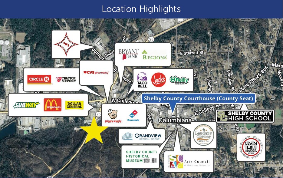 This property sits adjacent to the city, and future residents of homes built here will easily walk, ride a bike, or take a golf cart to historic downtown, Elvin Hill Elementary School, Columbiana Middle School, and Shelby County High School.