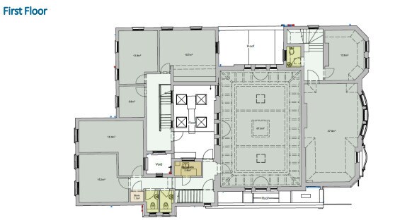 The property is a two-storey, detached, red-brick building located prominently in the heart of Richmond and comprises the former purpose-built Petty Sessions / Magistrates’ Courthouse, designed by architect W.J. Ancell, opened in 1896. Arranged over ground and first floors the building also benefits from basement storage. The specification is a mix of cellular and open plan spaces, WC’s and kitchen areas, with central heating and supplementary comfort cooling. The property is not listed however is a Building of Townscape Merit and located within a conservation area.
