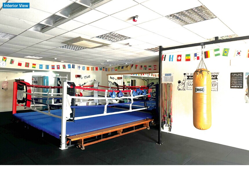 Comprend un atelier au rez-de-chaussée à double façade et un gymnase de boxe et un appartement résidentiel au-dessus, qui a été vendu à bail long