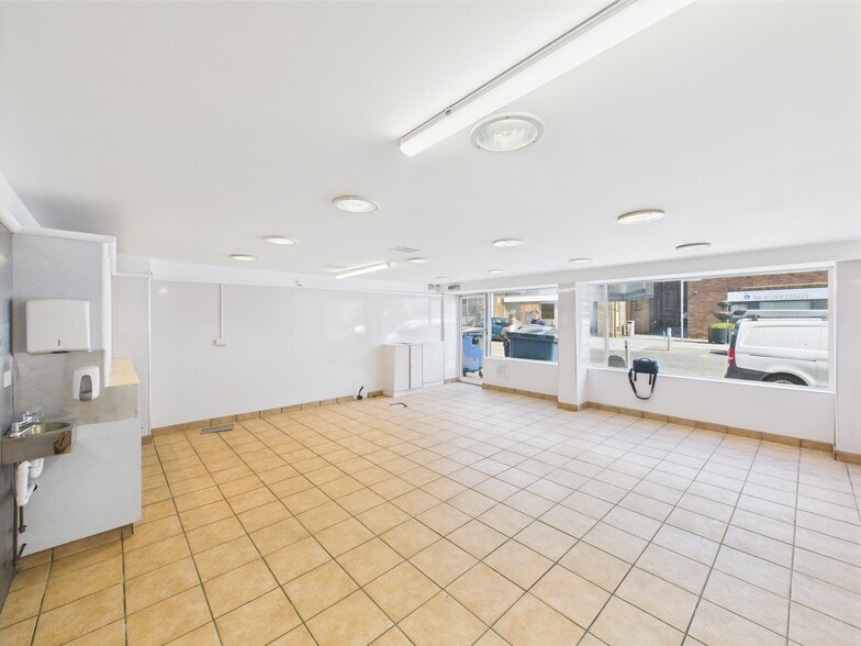 The subjects comprise a hot food takeaway with two large display windows and benefitting from a prominent roadside position. The front shop is currently without any fixtures and fittings usually associated with a hot food takeaway but has recently been refreshed throughout ready for a tenant fit-out. The flooring is ceramic tiles with a plasterboard ceiling and hygienic wall coverings. The rear section provides a space for food prep, fridges and washing up with a WC off to the side.