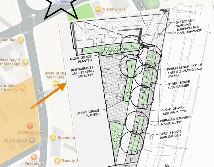 The Mayer 210 Bala Ave 3 500 pi² d'espace disponible • Commerce de détail • 4 étoiles • Cynwyd, PA 19004