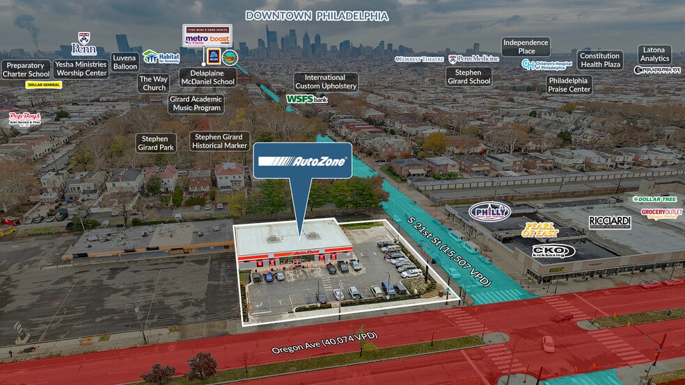 Sands Investment Group is pleased to exclusively offer for sale a 6,030 SF AutoZone located at 2101 Oregon Ave in Philadelphia, PA. This opportunity features an Absolute Triple Net (NNN) Ground Lease with zero landlord responsibilities and approximately 9 years of remaining term, backed by AutoZone (S&P: BBB). This strong credit tenancy, long-term stability, and passive lease structure make it an exceptional investment opportunity. Can be sold individually or part of a portfolio. Contact brokers for more details.
