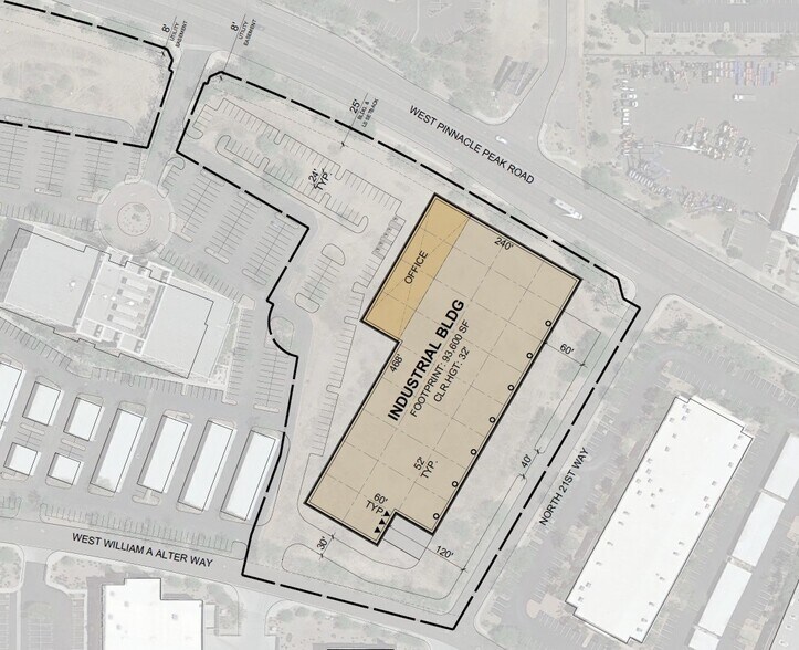 This build-to-suit opportunity at 2101 W Pinnacle Peak Rd offers exceptional flexibility for industrial users seeking a strategic Phoenix location. The site accommodates ±50,000 to 94,000 SF configurations, ideal for manufacturing, distribution, or advanced technology operations. Located less than half a mile from a full diamond interchange at I-17 and Pinnacle Peak Road, the property ensures seamless regional connectivity. Within one mile, tenants and owners benefit from over 1.7 million SF of retail, dining, and entertainment at destinations like The Shops at Norterra and Happy Valley Town Center. The site is also approximately 6 miles from the new multi-billion-dollar TSMC semiconductor plant, positioning it in a rapidly growing industrial corridor.