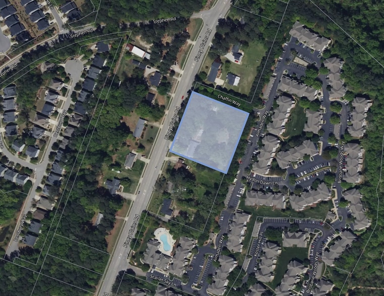 Land for sale in Cary positioned just off US 64 with road frontage on Piney Plains Road.