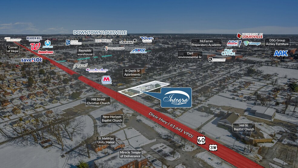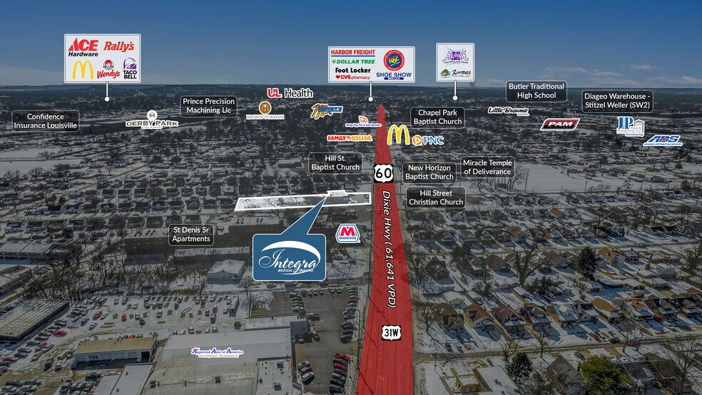- Strategically positioned along a major Louisville commercial corridor with 17,000 VPD, high visibility, & dense surrounding residential demographics.