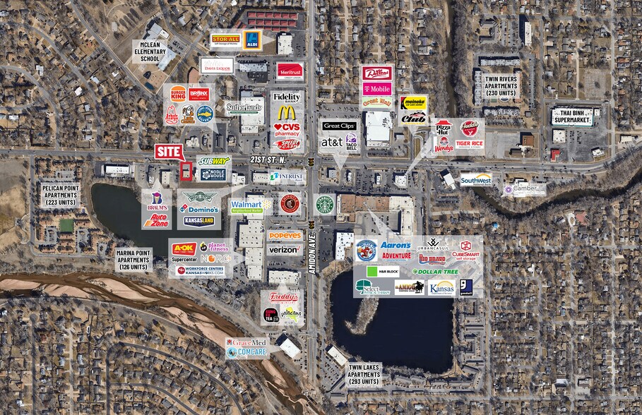 Visibilité de premier plan, situé près de la 21e et Amidon, un corridor très fréquenté idéal pour un restaurant, un commerce de détail ou un concept spécialisé unique. Stationnement abondant et forte présence sur rue font de cet emplacement une excellente opportunité pour un propriétaire-exploitant ou une marque en expansion cherchant une entrée abordable sur le marché. Les utilisateurs de la zone incluent Walmart, Dillons, Planet Fitness, Subway, Freddy's, Wing Stop, Kansas Workforce Center, et bien d'autres.