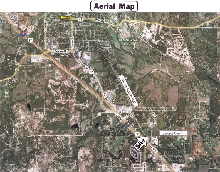 La propriété est de 5,01 acres et elle est située au 215 Old San Antonio Road, à l'angle nord-ouest de Cascade Cavern et Old San Antonio Road, à environ un demi-pâté de maisons de l'I.H. 10 dans la ville de Boerne.