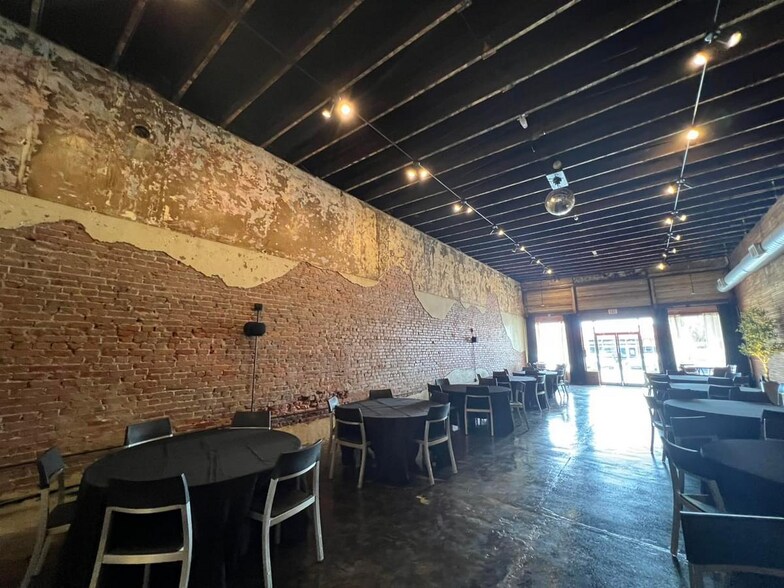This space is located in downtown Tishomingo, Oklahoma across from Blake Shleton's Ole Red. Situated in a historic 1880s building, the event ballroom has a capacity of 125 people and 2,000 sq. ft. of space. The remaining 1,000 sq. ft. of space can be used for storage. There is one small bathroom located in the back of the ballroom area. Amenities include long and round tables, counter-height tables, and serving tables on rollers.