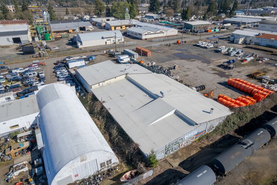 Industrial property in W. Eugene. Large warehouse use and office space with mezzanine. Opportunity for storage, distribution, truck repair, or a multiple of other industrial uses. Fenced yard with security system in place. Wood frame construction with high ceiling with 400amp power. Sliding doors for access to separate areas of building. Office units with bathrooms.