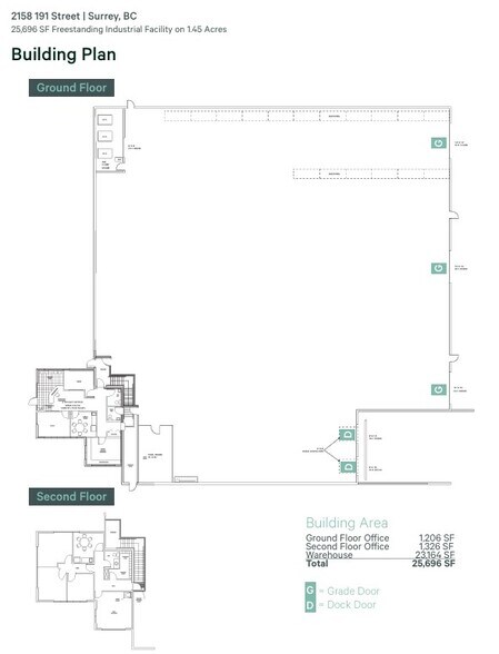 | Aire du bâtiment louable | 25 696 pi² | Nbre de quais à portes élevées/de chargement | 2 |