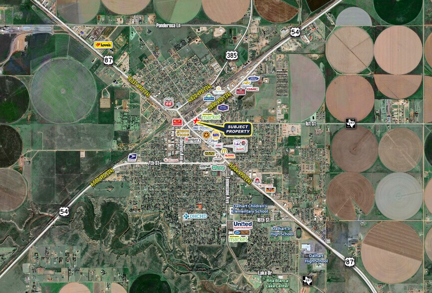 Dalhart’s economy is anchored by cattle feedlots, dairies, and grain production, providing a stable employment base and consistent demand for essential retail.