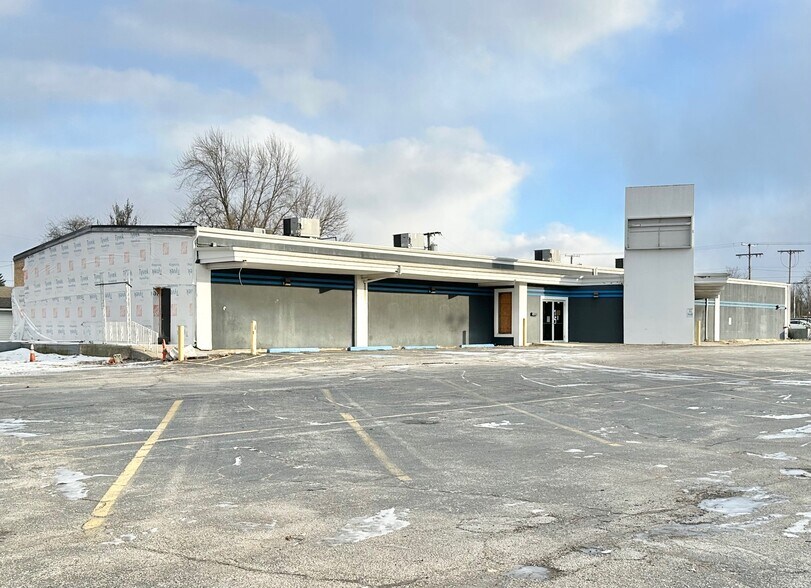 Rare remaining large site located one block off the Crown Point Square and Historic Court House. Suitable for office, retail or restaurant uses. This is a steel frame, steel and brick sided building originally built in 1962 as a Key Market grocery store, then converted to the former Super Bowl Bowling Alley. The current building is completely gutted ready for buildout and with a new roof and fire protection sprinkler system installed. A pole style, lighted double-faced sign is located on the north side of the property. 82 parking spaces available. 3 Phase 240V, 225+ AMP electric service. This is a great opportunity to be walking distance to the Crown Point Square!