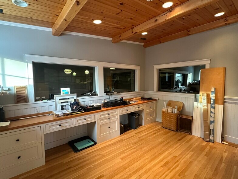 This facility offers a versatile mix of heavy-duty industrial bays and professional office spaces arranged across two floors. The ground-floor offices face the front entrance for customer-facing operations, while the upper-floor offices overlook the warehouse bays for operational management. Purpose-built infrastructure ensures reliable year-round operations. The facility features heavy-duty electrical systems, radiant in-floor heating throughout the warehouse, and ample parking with generous apron space for maneuvering large rigs. The first of two dedicated semi-trailer loading bays, featuring a standardized dock with bumpers and weather seals for rapid, all-weather freight operations. Inside, this bay provides high-clearance space with industrial-grade racking systems capable of handling high-density storage. An enclosed office mezzanine overlooks the bay floor, giving management direct visibility over operations. The second semi-trailer bay mirrors the capacity of Bay 1 with its own dedicated loading dock. This bay features expansive open floor space with multi-level mezzanine racking extending to the ceiling, ideal for high-volume inventory management. The generous vertical clearance accommodates forklifts and heavy machinery for efficient freight handling. The crown jewel of this facility: an oversized drive-in bay that allows a full semi-tractor trailer to pull directly into the building for secure, all-weather operations. This is an exceptionally rare feature on Martha's Vineyard. The bay provides massive unobstructed floor area with soaring ceilings, perfect for heavy equipment maintenance, fabrication, or any operation requiring full interior vehicle access. The ground floor features three private offices accessed through a welcoming front entrance with a two-story entryway. Positioned at the front of the building and separated from warehouse operations, these offices are purpose-built for customer-facing activities — reception, sales, client consultations, and administrative operations. A shared private bathroom serves the ground floor suite. The upper floor houses three offices designed for backend operations and management. Accessed via an interior staircase from the ground-floor reception, this level is separated from customer-facing activity and purpose-built for operational oversight. Two of the three offices feature windows overlooking the warehouse loading bays, allowing supervisors and managers to maintain direct visual contact with floor operations. The suite includes a full kitchen for extended work days and a private bathroom with modern finishes.