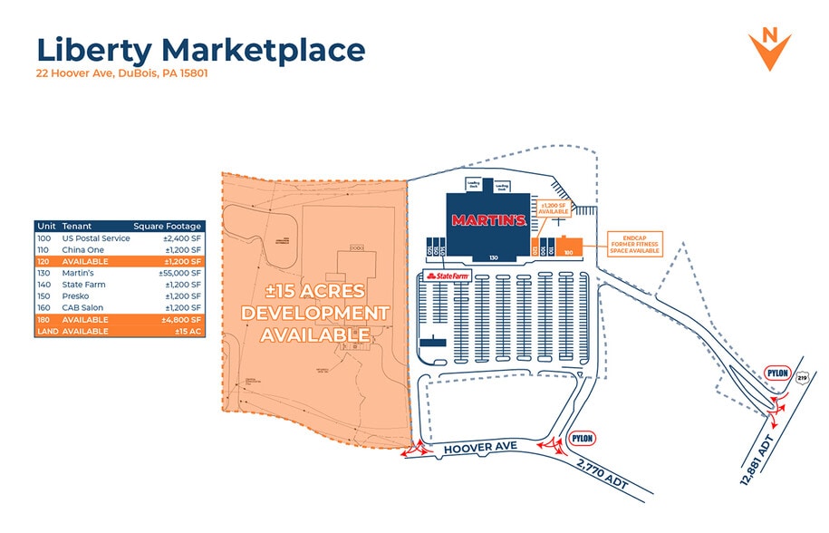 Liberty Marketplace 22 Hoover Ave 1 200–6 000 pi² d'espace disponible • Commerce de détail • Dubois, PA 15801
