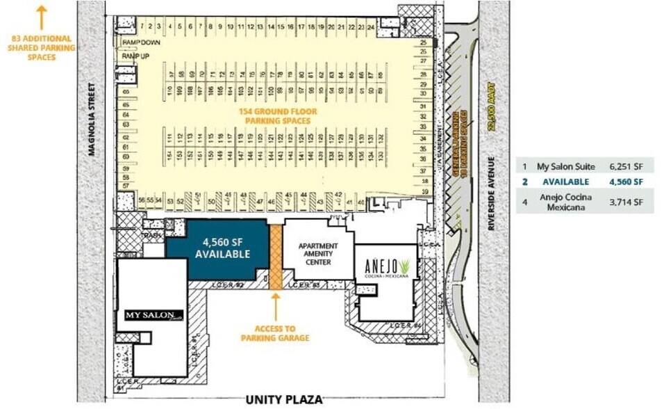 • 6 212 SF (divisible) dans l'espace de vente au détail au rez-de-chaussée du complexe d'appartements de 5 étages et 294 unités • Forte population diurne tirée des quartiers d'affaires à proximité (43 420 dans un rayon de 1 mille) • Situé sur l'avenue Riverside avec 29 000 VPD • Garage de stationnement attenant avec 411 places et 101 places de stationnement partagées supplémentaires avec propriété adjacente • La Place Unity et la station Brooklyn voisines et à distance de marche de Historic Riverside, Avondale et Five Points