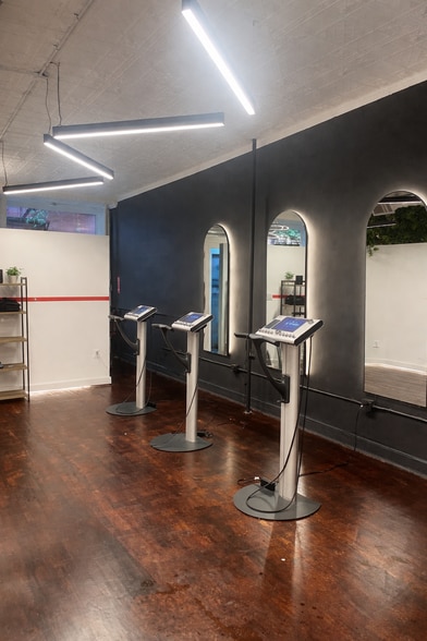 Fully built-out, versatile ground-floor space featuring a clean, modern interior with high ceilings and premium finishes throughout. The layout offers an efficient open floor plan with excellent flexibility for retail, office, showroom, or boutique studio use. Polished hardwood floors, contemporary lighting, and a sleek design create a strong, high-end presence. Move-in ready and easily adaptable to a variety of uses.