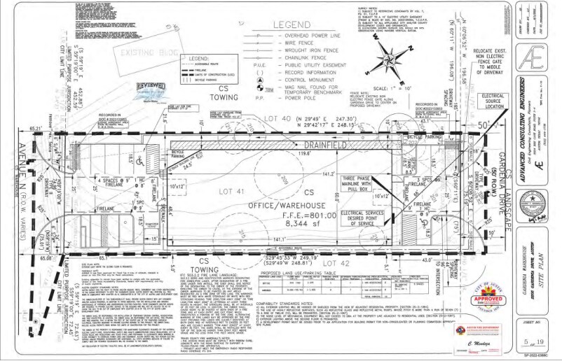 - Jurisdiction: City of Austin (limited-purpose); Walnut Creek watershed; with 20 to 25 parking stalls, on-site detention, and truck court/turnaround.