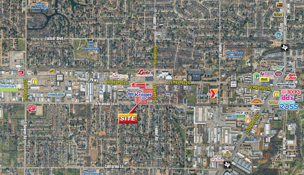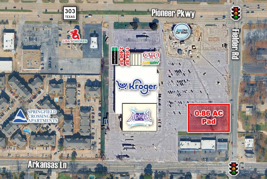 - Entre 2 intersections signalisées avec accès au site à partir de Pioneer Pkwy, Fielder Rd et Arkansas Lane