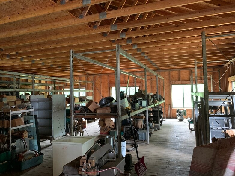 The 1981 industrial/shop building totals over 7,100 square feet across two levels. The lower level (approx. 3,500 SF) provides at-grade rear access with overhead door, concrete slab flooring, concrete walls, steel beam construction, and a small office area—well suited for light manufacturing, contractor operations, equipment storage, fabrication, or distribution support.