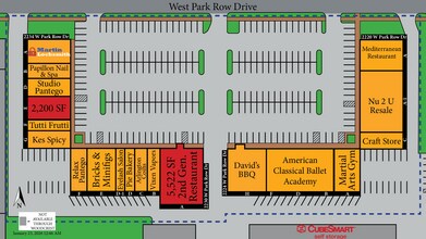 | Superficie totale disponible | 7 722 pi² | Façade | 605’ le W Park Row Dr |