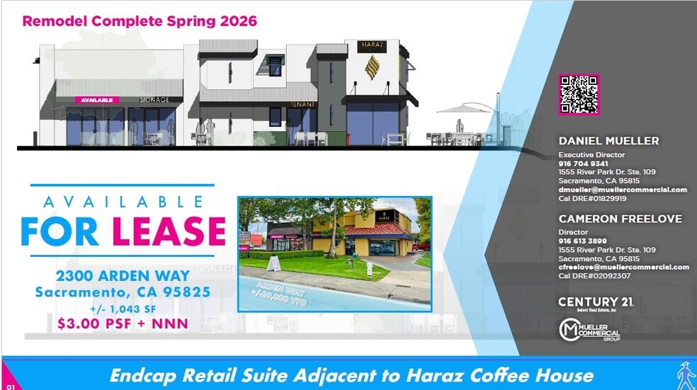 This prominent endcap retail suite is ideally positioned at the high-traffic intersection of Arden Way and Bell Street, offering excellent visibility and monument signage opportunities. This property offers strong co-tenancy from Haraz Coffee House and Banh Mi Mi — two thriving tenants that enhance traffic and visibility. Approximately 37,000 vehicles drive through the Arden and Howe Ave. intersection.