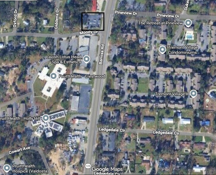 Positioned on one of Valdosta’s busiest commercial corridors, this prime corner lot along Bemiss Road and Moody Dr offers exceptional visibility and access with an impressive 2024 AADT of approximately 21,900 vehicles per day. This ±0.42-acre parcel is cleared, level, and ready for development, making it an ideal site for a variety of commercial uses. This lot has 120 ft of road frontage on Bemiss and 130 ft on Moody Dr giving it maximum exposure. There are two entrances/exits on the property as well, one off Bemiss Dr and the other off Moody Rd. All essential utilities—including water, power, and sewer—are available on-site, streamlining the development process. The corner positioning provides excellent ingress and egress potential, maximizing exposure for future business operations. With strong traffic counts, high visibility, and a strategic location in a growing area of Valdosta, this property presents a rare opportunity for investors or owner-users looking to capitalize on a well-positioned commercial site.