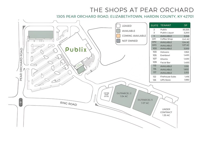 We are pleased to introduce this new construction, class A, grocery-anchored retail development now coming to this bustling corridor of Elizabethtown (KY). The overall master development offers a total of two (2) outlots and 16,346 ± SF of new construction retail space. Square footage and demising options are subject to availability.