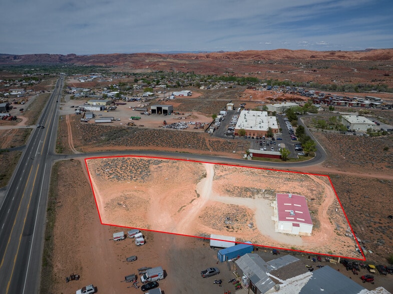 COMMERCIAL DEVELOPMENT OPPORTUNITY. Prime 2.34-acre corner lot with Highway Commercial zoning at the intersection of Resource Blvd and Hwy 191. High-visibility location with strong traffic exposure and excellent access, conveniently positioned south of town. The property includes a 3,035 SF building (75.3' x 40.3') built in 2007. Utilities are available, including municipal water and sewer. Expansive red rock and valley views add to the appeal. Suitable for a variety of mixed uses- high density residential and commercial.