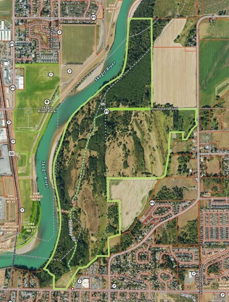 Incroyable propriété de plus de 314 acres avec près de 2,5 milles de front de mer le long de la rivière Skagit et comprenait 17 parcelles fiscales à Mount Vernon. Environ 30 acres de la propriété sont zonées résidentiels-agricoles avec plusieurs sites d'habitation potentiels et de vastes possibilités récréatives. Les 285+/- acres restants de la propriété sont assujettis à une servitude de conservation qui permet l'utilisation des terres pour des activités récréatives telles que la chasse, l'équitation, la randonnée, etc. Adjacent au YMCA de Mount Vernon, au Skagit Valley College et à une courte distance en voiture de l'I-5.