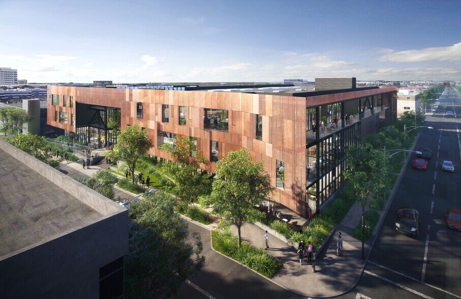 New, 2 building campus inspired by the industrial history of the Smoky Hollow neighborhood in the heart of El Segundo
