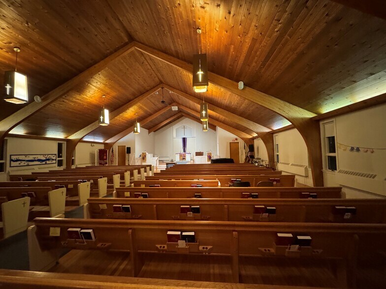 • Built on Pride Street at the top of a prominent hill Pride’s Corner Congregational Church was constructed by its members in 1960 employing vision and quality construction, which exudes a warm and welcoming presence throughout • The well-designed structure has been occupied by the congregation since it was completed and meticulously maintained since it was built • In addition to the congregation occupying Prides Corner Congregational Church, MY First School, a thriving preschool, leases space in the building with a lease that runs through August of this year, and would like to continue to lease from a new owner (the playground equipment belongs to the school and will be removed when they vacate the space) • The building is wood frame construction with a masonry lower level, a Gable/Hip Roof with asphalt shingles replaced in 2025 • Elevator access connecting the upper and lower level • The property consists of:- Sanctuary at street level seating 250 people- Lower Level under the Sanctuary containing Nursery School, offices, Cushman meeting room with seating for 35 people, an adjacent kitchen and fireplace- Friendship Hall is an adjoining event space seating 150 people with a fully equipped commercial kitchen- Two sheds and a playground outside- Parking for 200 or so attendees - 2.14± Acres of land where additional parking could be developed behind the playground • Located in growing Westbrook, and easily accessible from surrounding municipalities