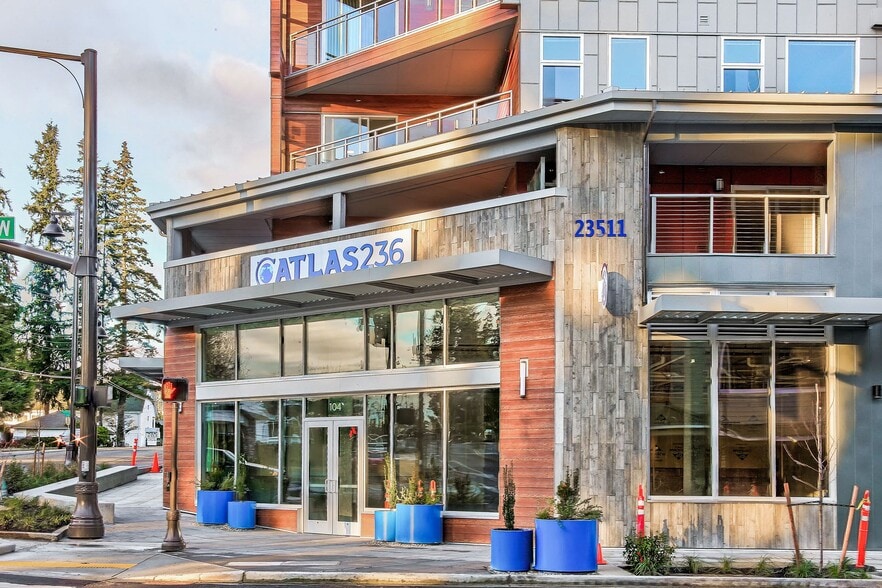Atlas 236 est le tout nouveau projet de développement à usage mixte situé à Mountlake Terrace. 10 305 pieds carrés d'espace commercial se trouvent sous 151 appartements. Les espaces commerciaux bénéficient d'un stationnement exceptionnel, avec 5 places par tranche de 1 000 pieds carrés.