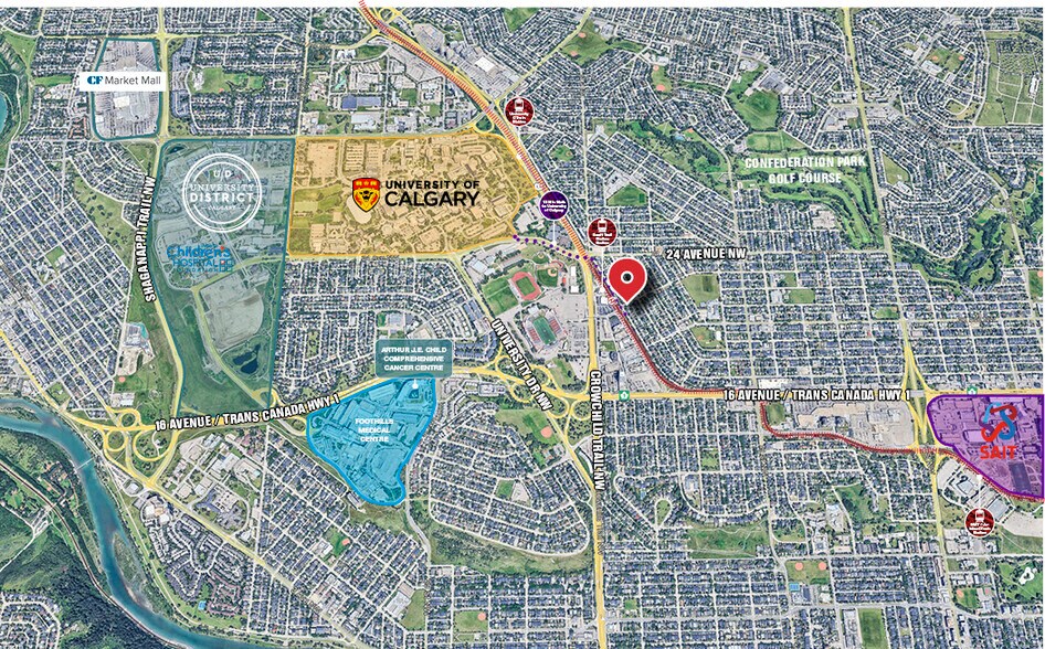 Situé dans le quartier établi de Capitol Hill, au cœur de Calgary, ce site de développement bénéficie d’un emplacement unique, offrant un mélange d’infrastructures académiques, médicales et de transport, le tout dans un environnement accessible à pied et bien relié au réseau de transport en commun.