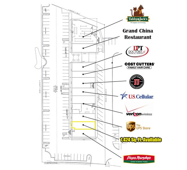 seulement 1 424 m2 Ft. Reste ; signalisation du bâtiment et du pylône disponibles ; stationnement en surface disponible ; situé en face du supercentre Walmart ; forte combinaison de locataires ; les locataires comprennent : UPS Store, Jimmy John's, Tabby and Jack's, Cost Cutters, US Cellular, Papa Murphy's, Doctors of Physical Therapy, Verizon Wireless et Grand China Restaurant ; Tarif de location : 20,00 $/m2. Ft. (NNN) ; *5,61 $/Sq. Ft. Dépenses estimées NNN