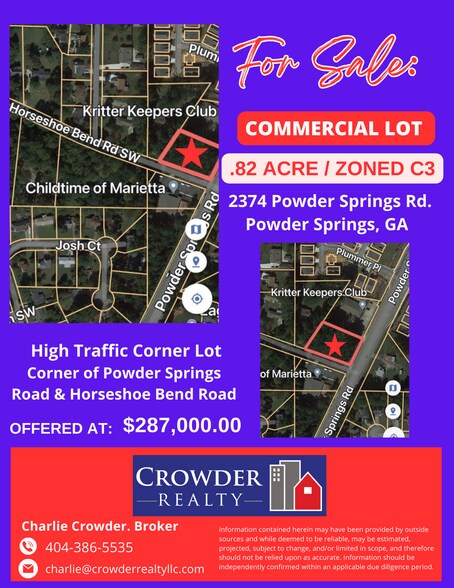 - Lot d'angle à fort trafic, chemin Powder Springs et chemin Horseshoe Bend
