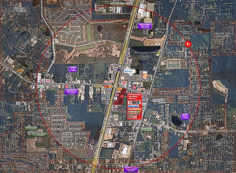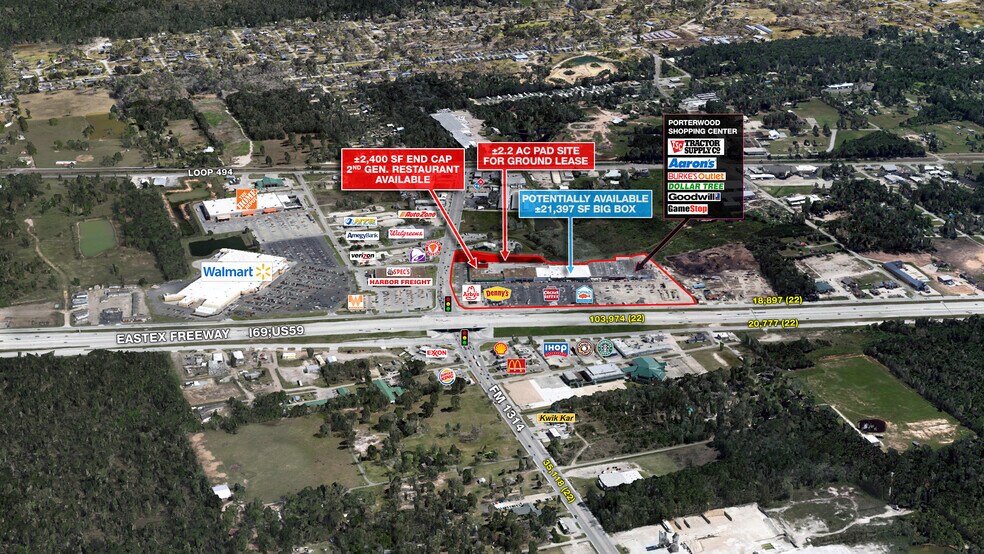 Porterwood Shopping Center 23741 Highway 59 21 397 pi² d'espace disponible • Commerce de détail • Porter, TX 77365