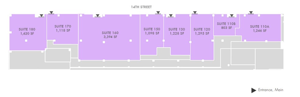 - Total de 12 899 pi2 du commerce de détail faisant face à la 14e rue.