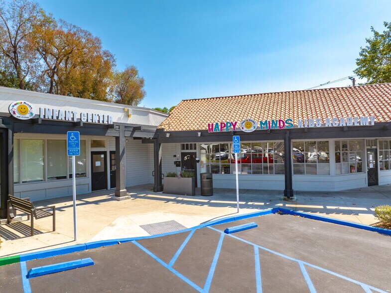 1,226 SF vacant retail space. Storefront faces parking. Ideal for retail, beauty, or children’s use. Natural light from storefront windows and skylights. Open truss ceiling in front half.