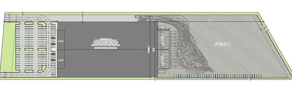 -100 000 pieds carrés (97 000 pieds carrés d'industriel et 3 000 pieds carrés de bureaux)