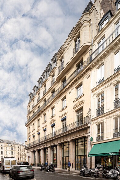 Le bâtiment bénéficie d’un emplacement remarquable au cœur du quartier situé entre l’Opéra et la Madeleine, dans un secteur reconnu pour son dynamisme économique et sa qualité architecturale. Sa position d’angle lui confère une grande visibilité ainsi qu’une exposition naturelle appréciable, renforçant le caractère premium de l’ensemble. Les parties communes ont fait l’objet d’une attention particulière, avec un hall habillé de matériaux nobles et des circulations modernisées pour valoriser l’image du lieu. L’immeuble s’intègre dans un environnement particulièrement bien desservi par les transports en commun, les commerces et les services, ce qui contribue à en faire une adresse recherchée par les utilisateurs souhaitant conjuguer standing, accessibilité et confort moderne.