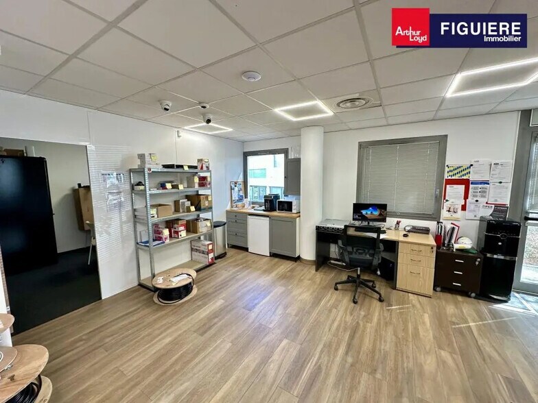 ARTHUR LOYD FIGUIERE IMMOBILIER - Découvrez à Aix-en-Provence ces bureaux à louer, alliant confort et modernité : climatisation réversible, moquette ou sol PVC en fonction des espaces, open space lumineux, salle de réunion, et vaste espace de stockage. Profitez de 6 places de parking privatives, et de sanitaires communs. Parfait pour optimiser votre activité professionnelle. Digicode Parking privatif Sanitaires dans les parties communes Climatisation réversible en faux plafond Moquette et sol PVC imitation parquet 2 bureaux Open space Salle de réunion Grand espace de stockage (environ 30 m2) Baie de brassage avec cablage RJ45 Surface RDC : 119,97 m²