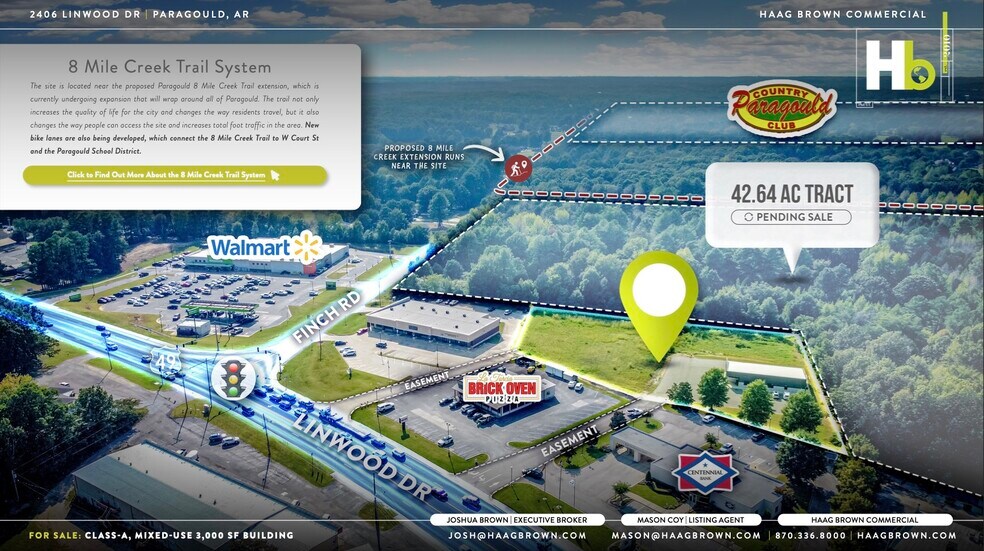 Haag Brown Commercial est ravie de présenter cette occasion exceptionnelle, un immeuble de catégorie A de 3 000 pi2 sur 2,32 acres prêt à être aménagé et situé à l'avant-garde de la croissance et de la prospérité de Paragould, À VENDRE.