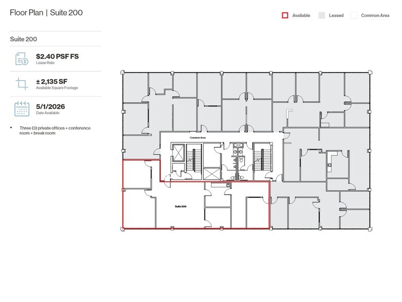 3x Private Offices + Conference Room + Break Room