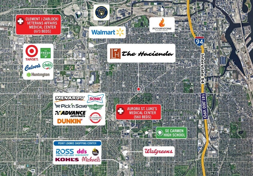 - Proximity to several major traffic draws – Aurora St Luke’s Medical Center (560 beds), Clement J Zablocki Veterans Affairs Medical Center (673 beds)