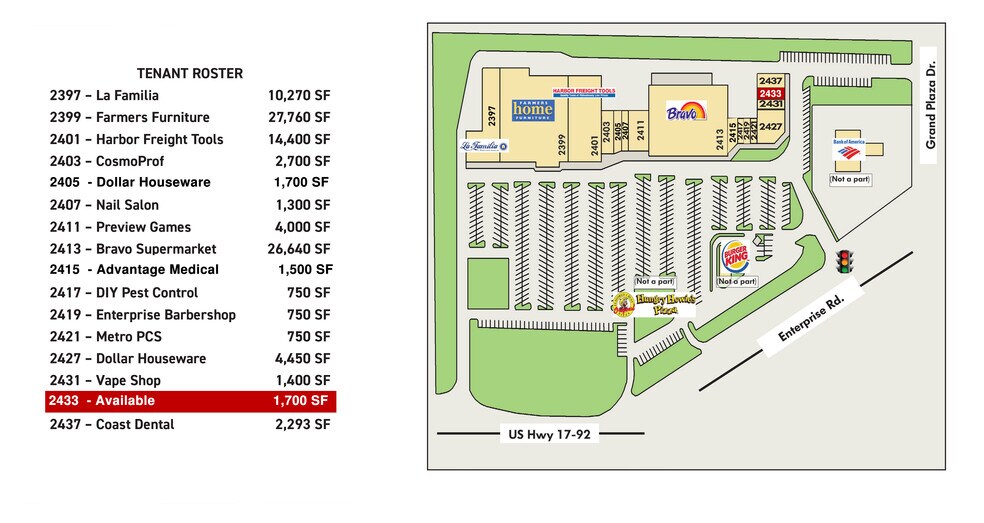 - Located on the corner of US 17-92 & Enterprise Road with excellent visibility on both roads and a signalized intersection on Enterprise Road