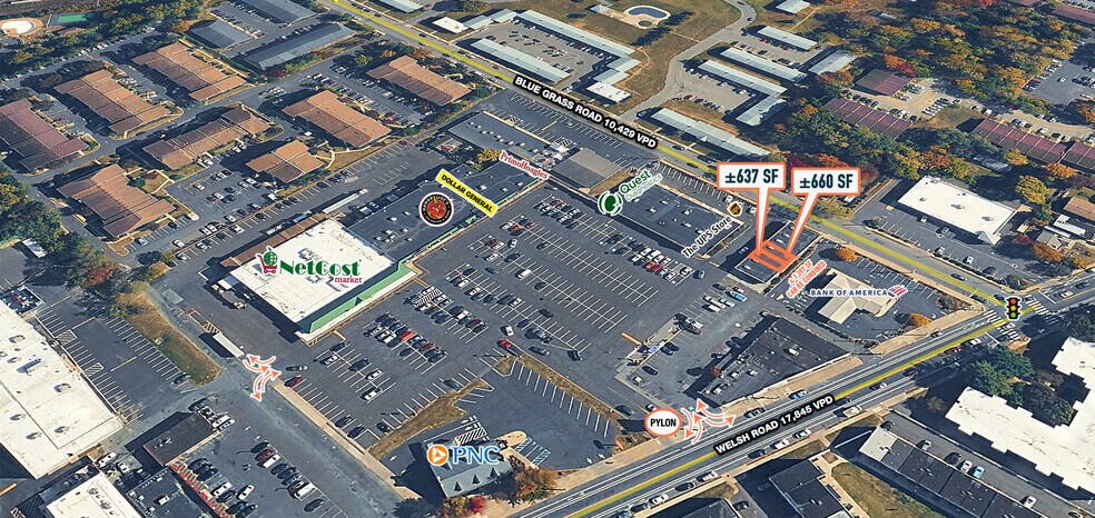 | Superficie totale disponible | 1 297 pi² | Façade | 578’ le Welsh Rd |