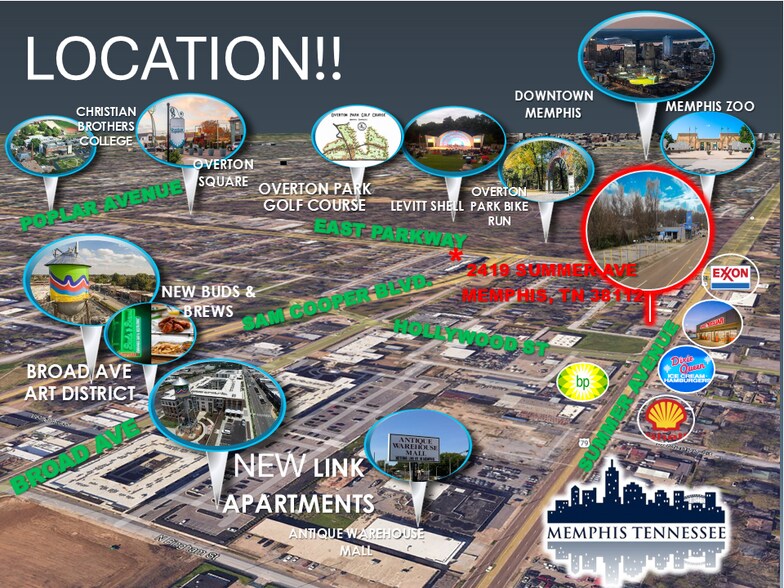 La propriété est située au 2419 Summer Avenue, Memphis, TN 38112, au cœur de Midtown Memphis. Il s'agit d'un terrain vacant d'environ 0,30 acres (13 155 pieds carrés) avec des dimensions de 150' x 88' et une façade de 130 pieds le long de Summer Avenue. Le site est zoné C-L Commercial, offrant une flexibilité pour diverses opportunités de développement commercial. Sa localisation centrale permet un accès pratique aux routes principales, y compris l'I-40 et Poplar Avenue, et il est entouré de quartiers dynamiques et d'aménités telles que Overton Park, le zoo de Memphis, Levitt Shell et le Broad Avenue Arts District.