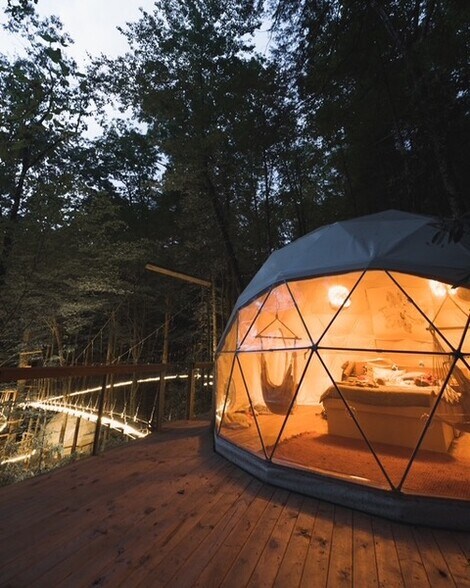 INVESTMENT PORTFOLIO: Incredible opportunity within the Red River Gorge: Dome Town includes 3 geodesic domes (with a shared bath house). Strong Instagram following. Strong rental history. Dome Town is a series of geodesic domes suspended in the trees with incredible rental history. The 3 sleeping domes are connected by suspension bridges that weave through the canopy, a giant canopy lounge net, and one communal water dome with (2) full baths & (1) wash station. A very unique outdoor experience right in the heart of the Red River Gorge. Can be sold as bundle with The Lookout (250 Wood Thrush Lane). Inquire.